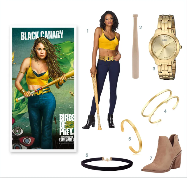 Vos accessoires doivent être minimes mais suffisants pour accentuer ce costume sexy. Tout ce dont vous avez besoin est une montre en or, des bracelets en or et un tour de cou minimaliste. Une ceinture dorée constitue également un excellent accent. Bien sûr, vous avez également besoin de la batte de baseball pour montrer que vous êtes définitivement quelqu'un avec qui il ne faut pas se laisser embêter. Si vous allez à une fête costumée [d'Halloween] avec des amis en tant que filles de Birds of Prey, c'est définitivement une tenue pour vous. Marchez avec les autres filles fièrement et avec un regard prêt à se battre !