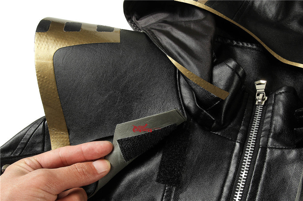 Komponenten: Kapuzenjacke, Kampfhose, Maske, Schulterrüstung, Überkörperschlaufe, Doppelter Utility-Gürtel, Handschuhe, Handgelenkschützer, Knieschützer, Stiefel.
