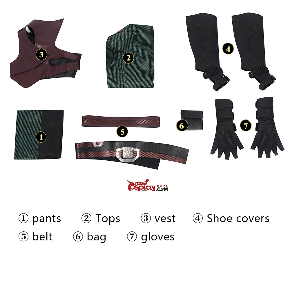 Komponenten: Verstärkte Kampfhose, Gepanzerte Weste, Modulare Panzerweste, Griffige Schuhüberzüge, Utility-Gürtel x2, Kampfgürteltasche, Stulpenhandschuhe x2.