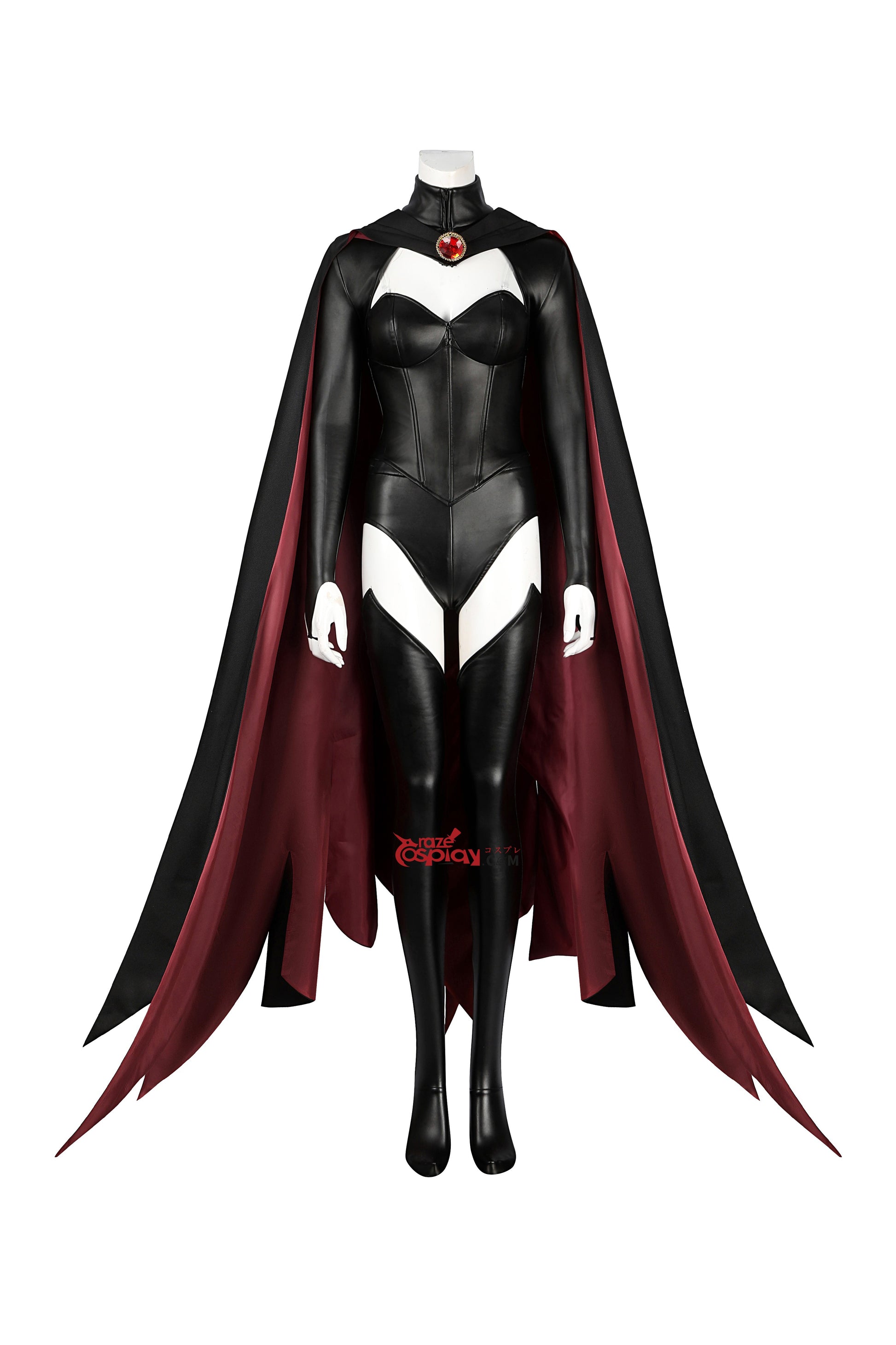 Komponenten: Mantel, Umhang, Bustier, Shorts, Socken, transparente Schulterträger, Halsausschnitt-Verzierungen.