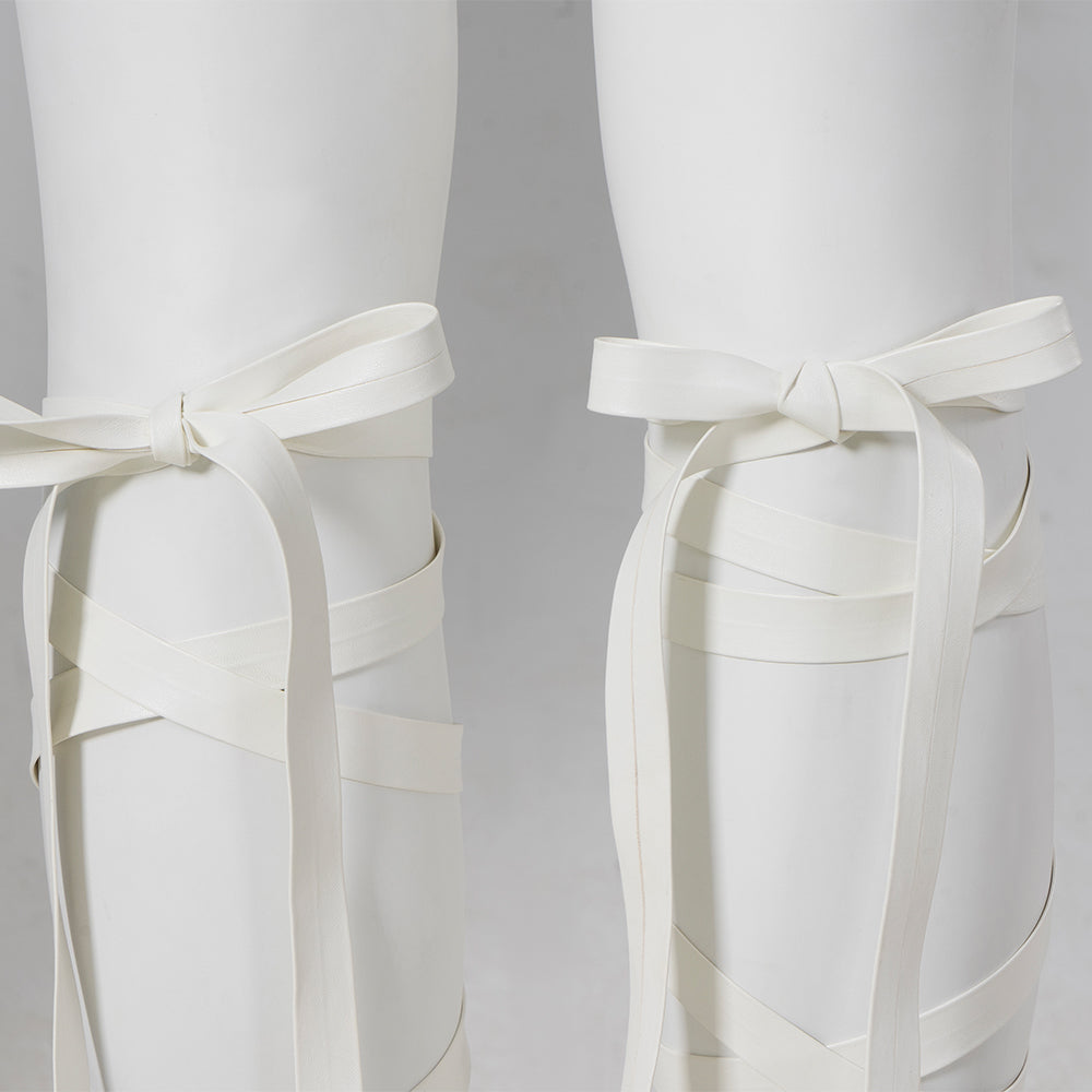 Stoff: Römischer Stoff, Milchseide, Goldfarbiges Leder, Weißer Netzstoff, Grauer Strickstoff, Blaues Leder, Weißes Verbundleder, Uniformstoff, Silberfarbiges Leder