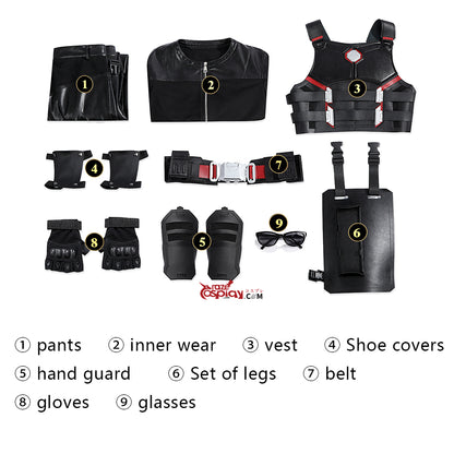 Komponenten: Taktikhose, Gepanzertes Unterziehshirt, Verstärkte Weste, Schuhüberzüge, Handgelenkschützer, Beinschützer, Utility-Gürtel, Kampfhandschuhe, Vampirjäger-Brille.
