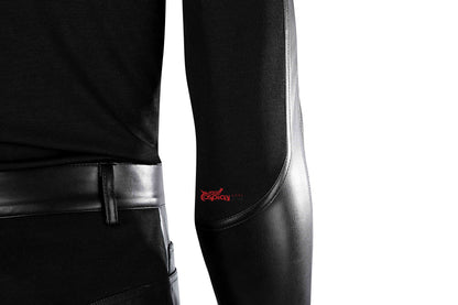 Unterziehshirt: Dehnbares PU-Leder, dehnbarer Strickstoff.