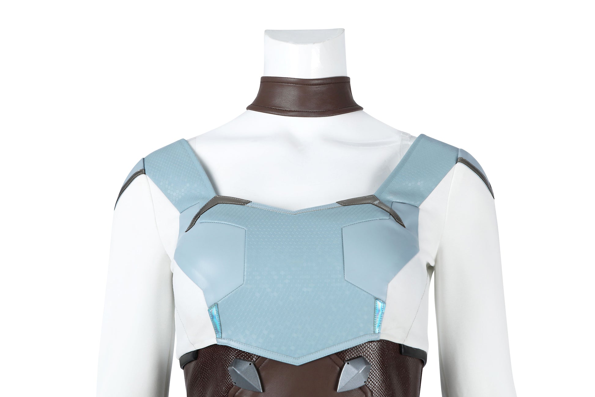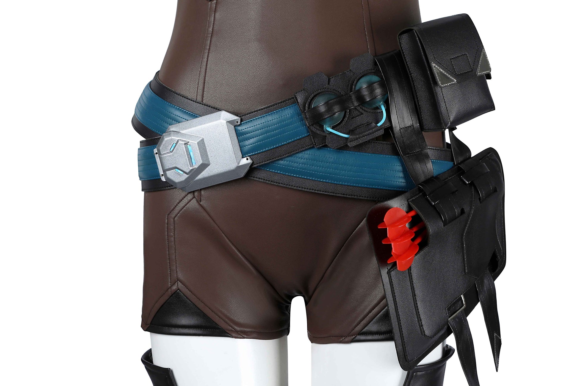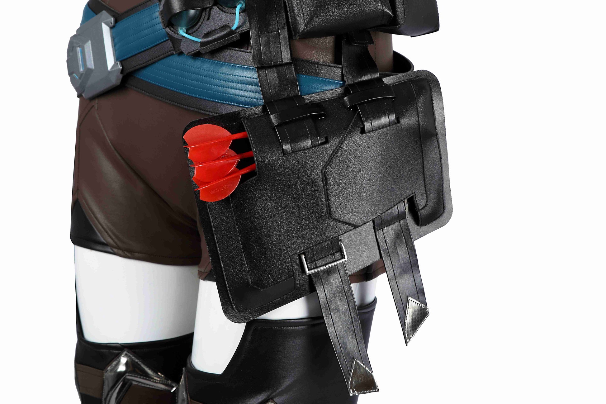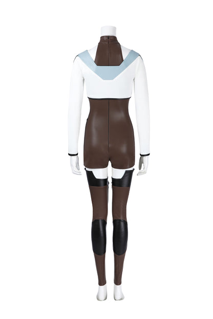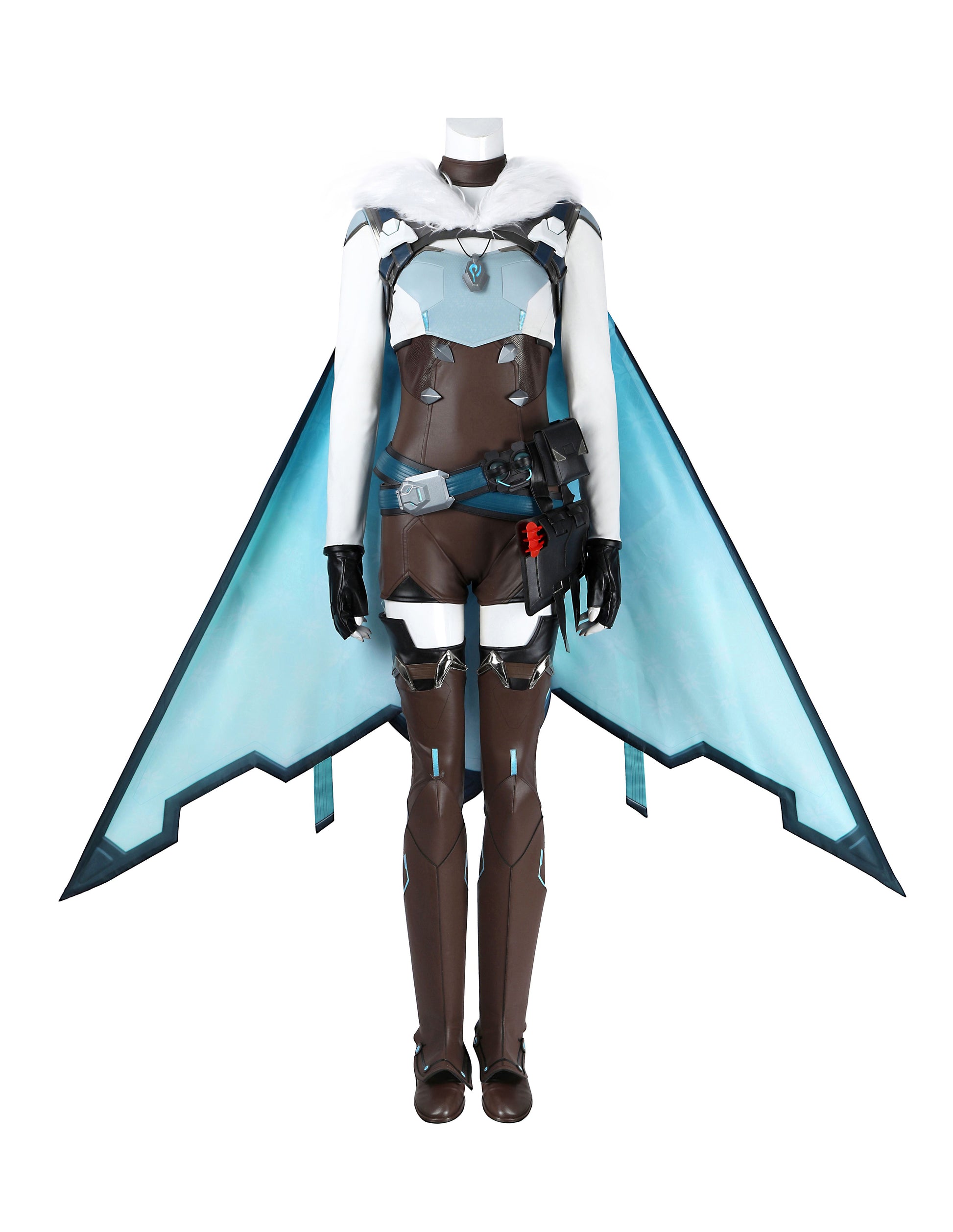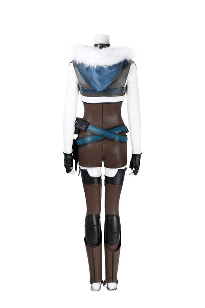 Komponenten: 1. Umhang 2. Ganzkörperanzug 3. Strumpfhose (x2) 4. Gürtel (x2) 5. Weste 6. Pelzkragen 7. Oberbekleidung 8. Hüfttasche 9. Handschuhe (x2) 10. Beinschützer (x2) 11. Halskette 12. Schulterriemen (x2) 13. Ohrclips (x2) 14. Stirnband (x2)