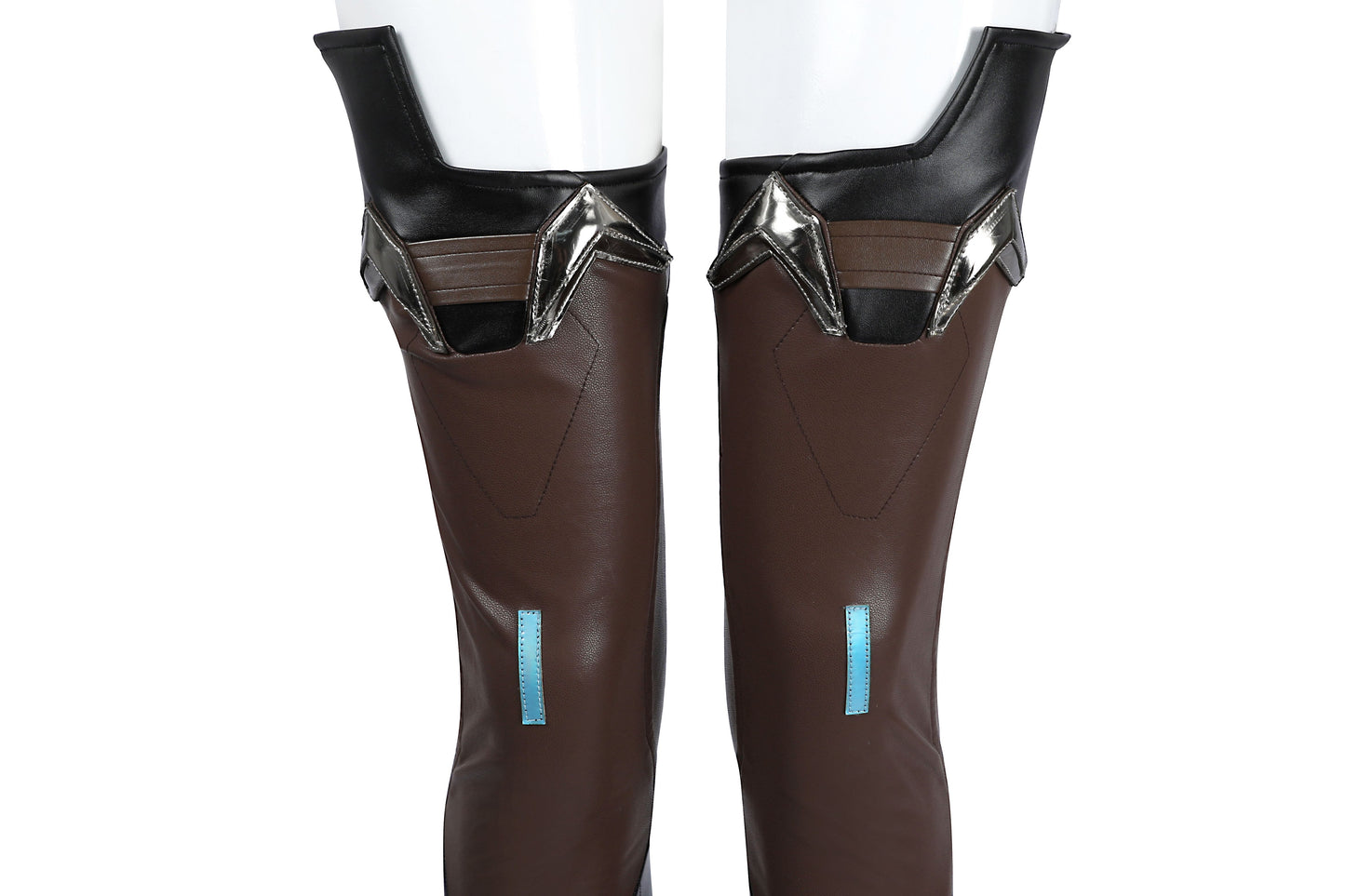 Beinschützer: Schafnarben-Dickleder (nicht dehnbar), Alpha-PU-Leder (4-Wege-Stretch), holografisches PU-Leder (nicht dehnbar)