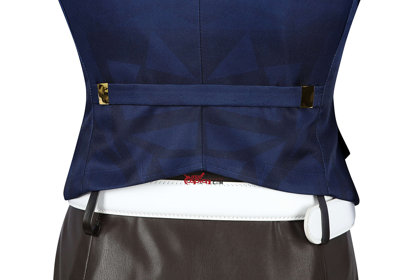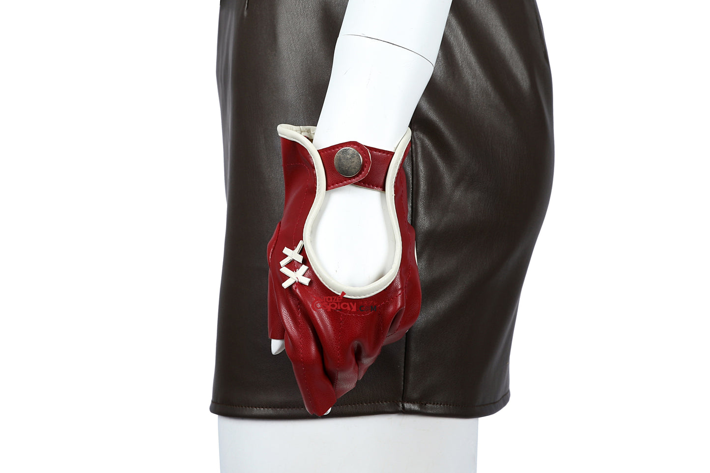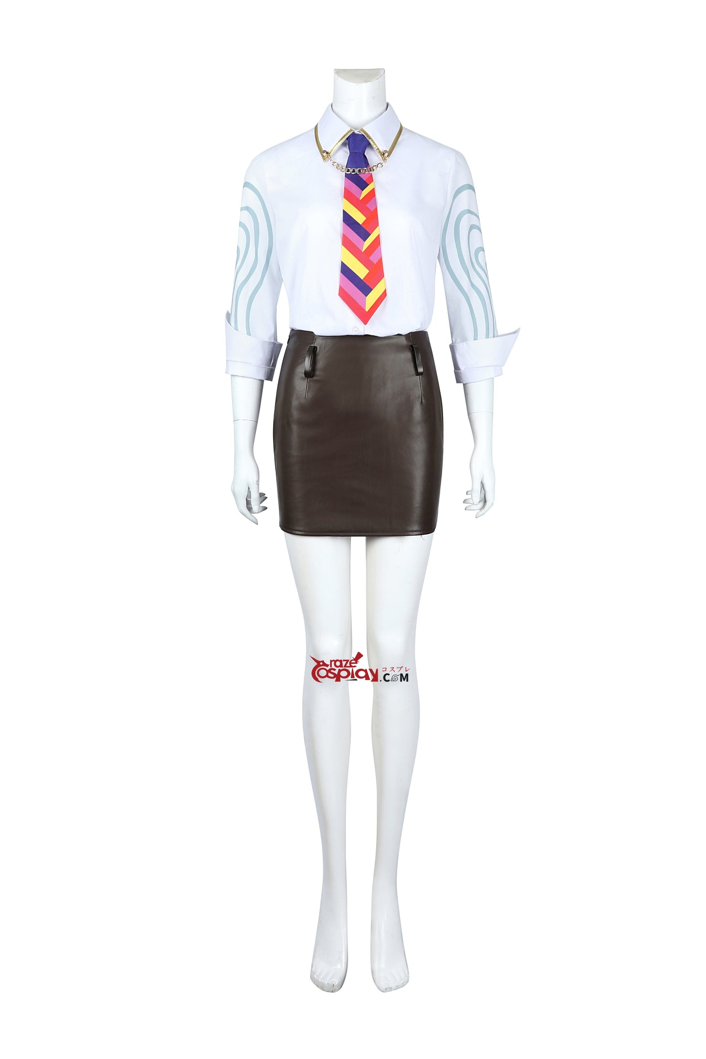Verlaufstrumpfhose, Präzisionshemd mit Manschetten, Doppelreihige Waffenweste, Lasergeschnittener Lederrock, Magnetische Zielfernrohr-Krawatte, Zahnrad-Halskette, Touchscreen-Handschuhe, Korsettgürtel mit Druckknopf, Patronen-Ohrstecker, Goldene Waffenkarten, Zielfernrohr-Brille